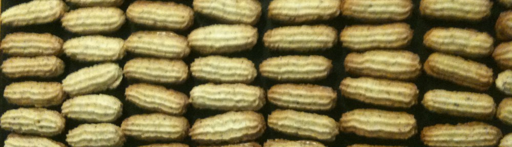 - 130 Gramm gemahlene Nüsse ebenfalls unterheben, mit Spritzbeutel ca. 4cm lange Stangen aufs Blech spritzen und bei 180°C für ca. 10 Minuten backen, anschließend mit