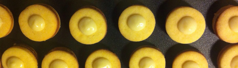 - 60 Gramm Butter zu einem Mürbteig verkneten, runde Plätzchen ausstechen und bei 200°C für 7-10 Minuten backen, während dessen die Fülle vorbereiten: